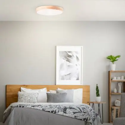 Brilliant Slimline Ceiling Light Metal Wood Plastic Wood White 34W 3800lm - 830-865 CCT | 500mm - Remote Control Dimmable
