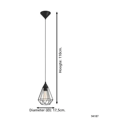 Eglo Pendant Tarbes Black | IP20 - Suitable for 1x E27