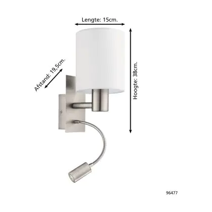 Eglo Wall Light Pasteri Steel Satin Nickel 40 | IP20 - Incl. Spot and Excl. 1x E27