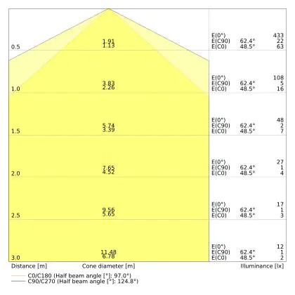 ![]() The colour code is a combination of colour rendering (CRI) and light colour (Kelvin). The first number indicates the colour rendering (1 = very poor colour rendering, 9 = maximum colour fastness). The second and third number contains the light colour. Example: the colour code 830 consists of good colour rendering (8) and warm white light (3000K). |