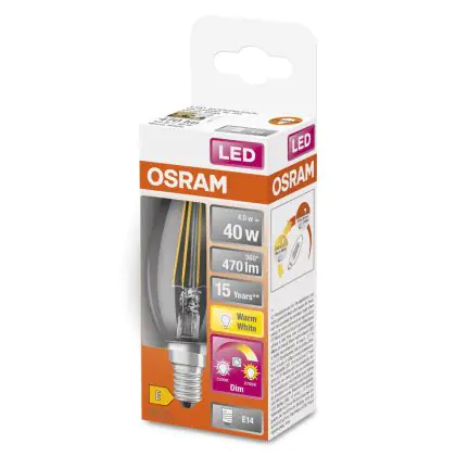 Osram Superstar Classic LED E14 Candle Filament Clear 4W 470lm - 822-827 Dim To Warm | Dimmable - Replaces 40W